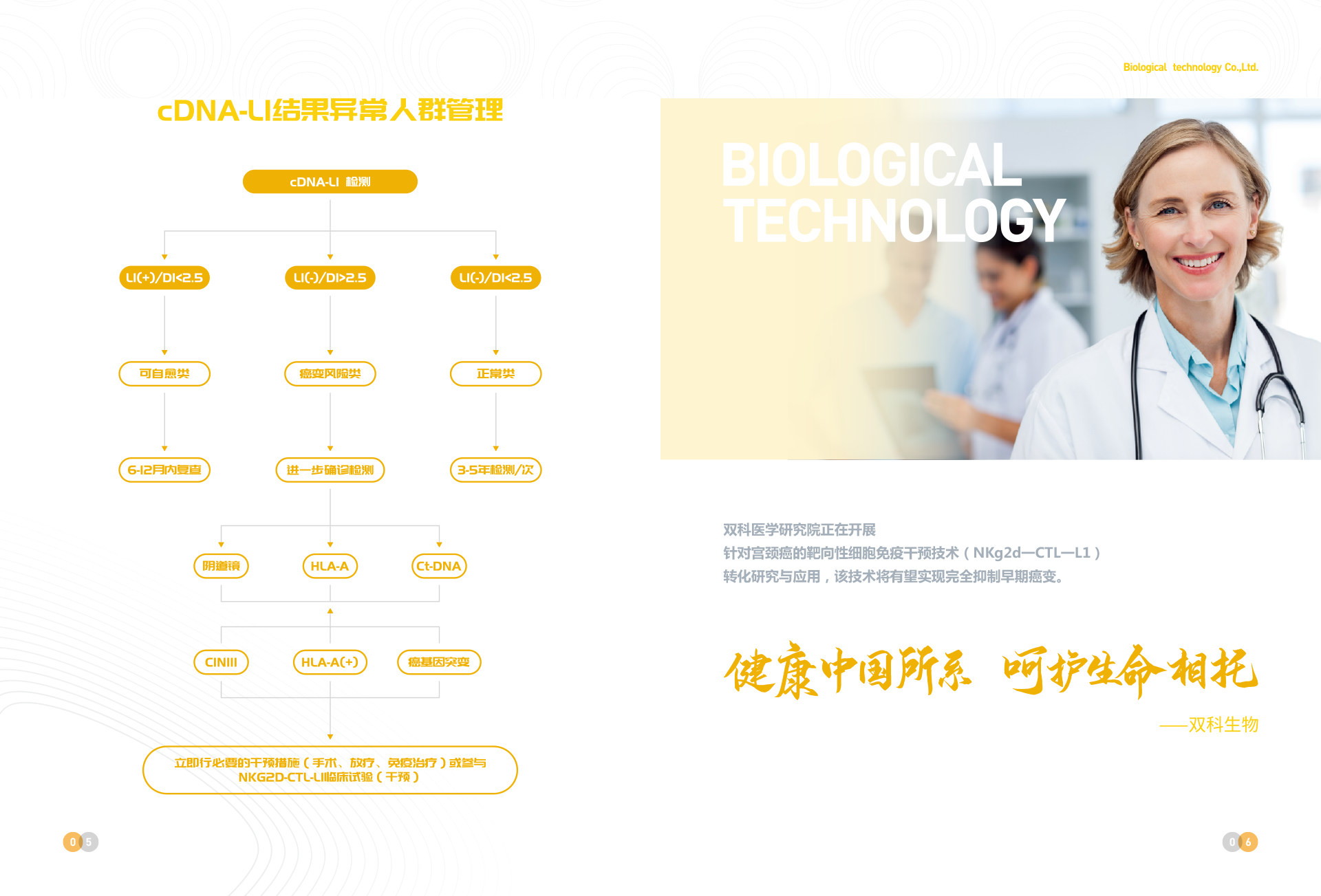 深圳市雙科生物科技有限公司創(chuàng)立于2012年12月12日,是按照國家“十二五”、“十三五”科技創(chuàng)新規(guī)劃、《中國防治慢性病中長期規(guī)劃(2017-2025年)》與《“健康中國2030”規(guī)劃綱要》等政策要求,以“健康中國所系,呵護(hù)生命相托”為公司使命,在“十二五”及“十三五”期間公司先后完成技術(shù)體系建模與試運行、服務(wù)體系構(gòu)建與運行、腫瘤綜合防控體系建立與實施,在高新生物技術(shù)領(lǐng)域,形成了具有完全自主創(chuàng)新與獨立知識產(chǎn)權(quán)的常見腫瘤液態(tài)活檢技術(shù)、體細(xì)胞技術(shù)、醫(yī)學(xué)AI技術(shù)、宮頸癌預(yù)警cDNA-L1技術(shù)、腦卒中早期預(yù)警MTHFR/MTRR技術(shù) 、 N-MDT技術(shù)、“防-控`-保”技術(shù)等和服務(wù)體系。